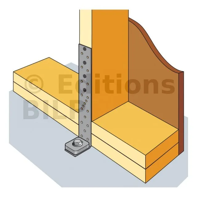 - Permet d‘ancrer solidement le mur ossature bois au sol (préconisé en zone sismique),