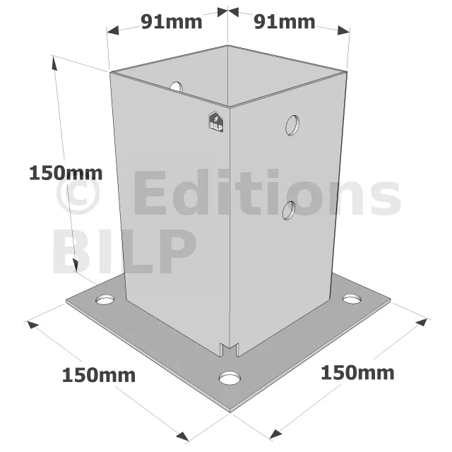 Les pieds de poteau carrés sur platine PPJBT sont préconisés dans la réalisation de petits ouvrages tels que les clôtures et structures légères de jardin. Très faciles à démonter, ils peuvent être boulonnés sur support béton et acier ou vissés sur bois.