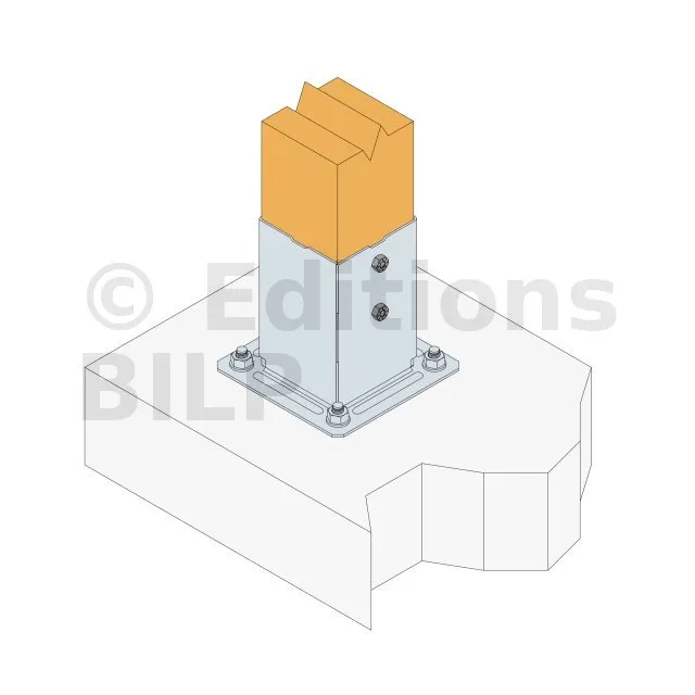 Mise en œuvre pied de poteau carré sur platine "prêt-à-fixer"