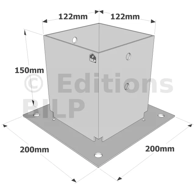 Les pieds de poteau carrés sur platine PPJBT sont préconisés dans la réalisation de petits ouvrages tels que les clôtures et structures légères de jardin. Très faciles à démonter, ils peuvent être boulonnés sur support béton et acier ou vissés sur bois.