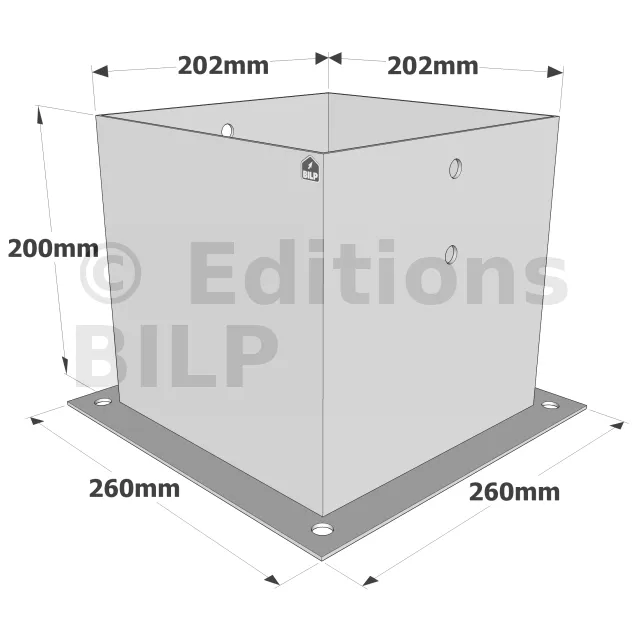 Les pieds de poteau carrés sur platine PPJBT sont préconisés dans la réalisation de petits ouvrages tels que les clôtures et structures légères de jardin. Très faciles à démonter, ils peuvent être boulonnés sur support béton et acier ou vissés sur bois.