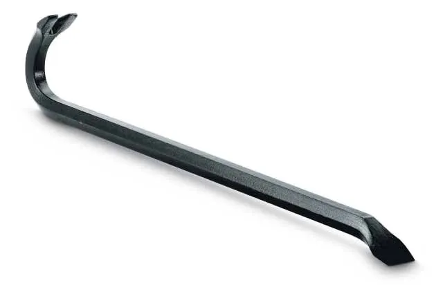 est surtout utile au moment d’un décoffrage ou pour défaire un assemblage de planches mal réalisé. Le pied-de-biche dispose typiquement d’un arrache-clou à une extrémité qui peut aussi recevoir les coups d’une masse, et d’une griffe-levier à l’autre extrémité. Plus grande est la barre, plus puissant est le levier.