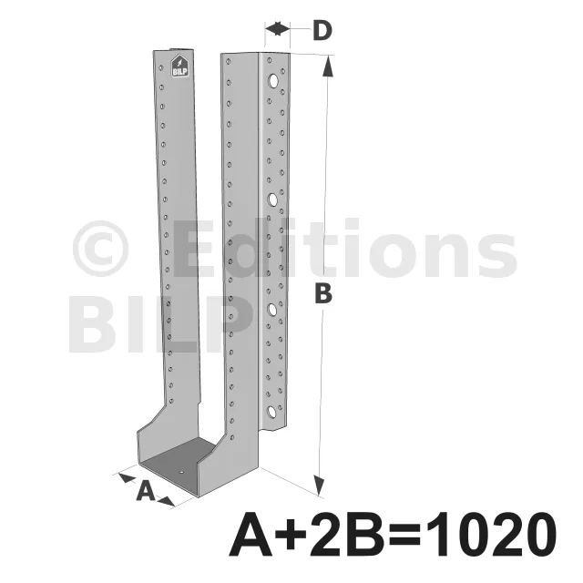Grands sabots à ailes extérieures, gamme GLE ECONOMIQUE (développé 1020mm, épaisseur 2.5mm, profondeur 90mm) - Réf. GLE1020/2.5X