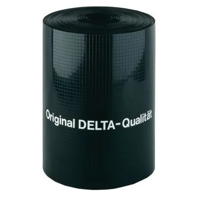 DELTA®-DPC est utilisé pour les murs doubles à la base de la construction et les raccords de fenêtres. Les recouvrements sont collés avec DELTA®-THAN. Il est compatible avec les membranes d’étanchéité bitumineuses, mais il ne doit pas être soudé directement.
