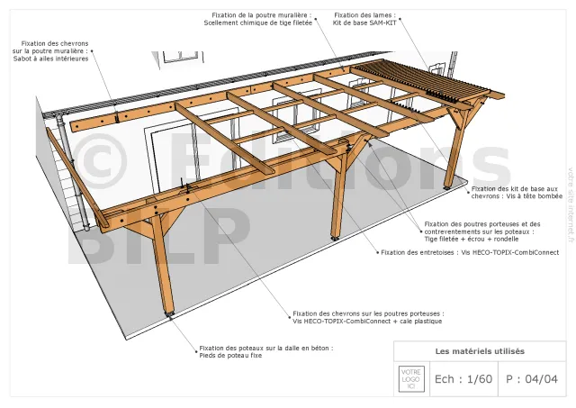 - Les plans de structure, les plans détaillés de la réalisation, une liste des matériaux avec un devis estimatif des coûts, une animation 3D de votre future pergola. Pour ce type de prestation, nous vous proposons la prestation complète de plan sur mesure