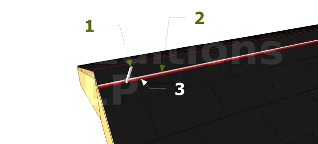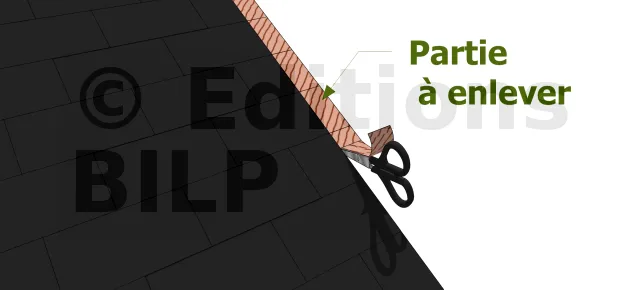 Tout le long du pignon de la toiture, marquez et couper les parties excédentaires. Pour ce faire, hachurer la partie à enlever ; coupez-les bien droites avec des cisailles. Un couteau avec planche d’appui à la place peut aussi faire l’affaire
