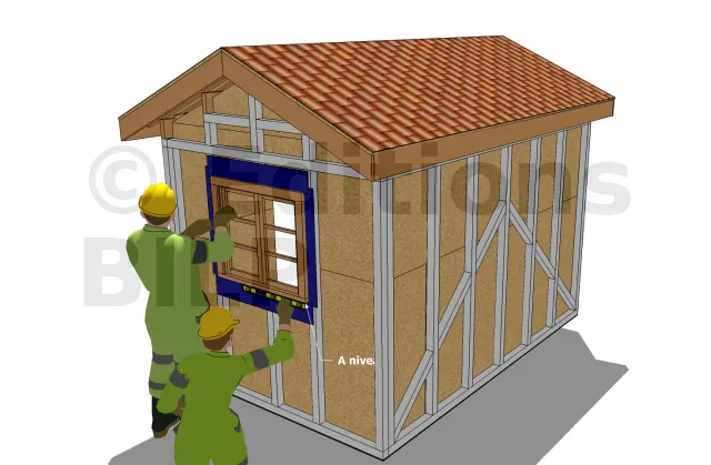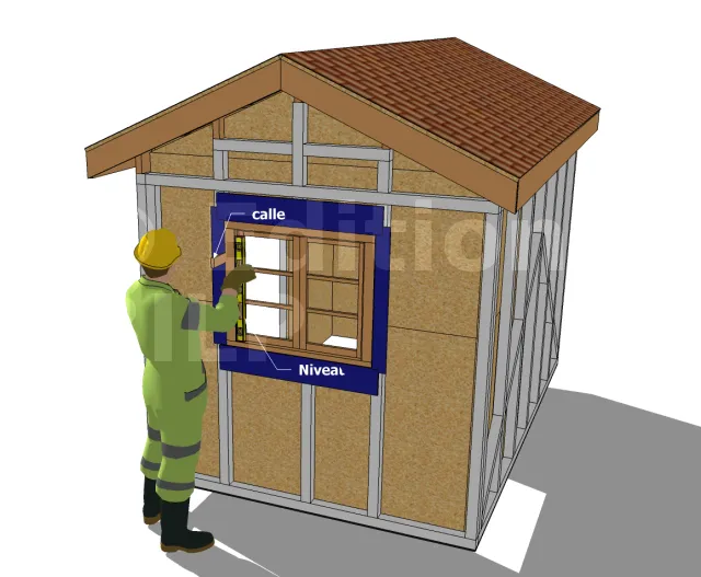 Lorsque la fenêtre à installer est à niveau, ajuster les montants latéraux avec des cales jusqu’à ce que le châssis de fenêtre soit parfaitement en équerre. Vous pouvez le vérifier en utilisant soit une équerre de charpente à l’intérieur des jambages ou en vérifiant les diagonales de l’ouverture de la fenêtre pour s’assurer qu’ils soient de même longueur.