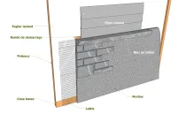 A l’aide d’une truelle, couvrir la surface du mur de la zone d’installation avec une couche de mortier d’une épaisseur d’environ 1-3 cm. Pour cela, préparer un mélange de deux sables avec un mortier de type N et assez d’eau jusqu’à ce que le mélange soit bien consistant. Après avoir appliqué le mélange avec la truelle sur le mur et 30 minutes de séchage, lissez et aplanissez la surface à l’aide d’une taloche.