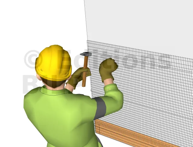 Les pierres de placage de fonte peuvent être appliquées sur un mur plein ou bien tout simplement orner les parties extérieures d’une parois. La hauteur de recouvrement est idéale entre 91 et 107 cm. Une couche de lattis est étalée et fixée sur le papier isolant pour servir de ferraillage au mortier