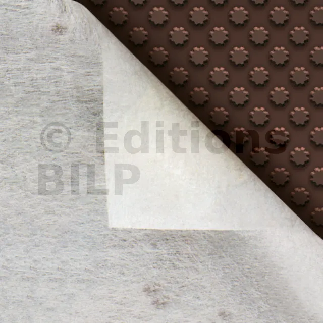 - MatériauNappe à excroissances en PEHD à alvéoles octogonales associée à un géotextile filtrant hydrophile PP