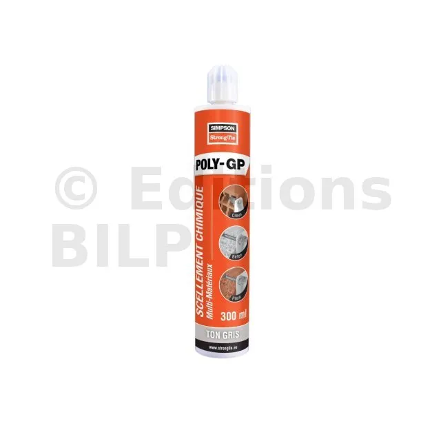 La résine multi-matériaux POLY-GP est un ancrage chimique permettant de fixer les tiges filetées dans le béton C20/C25 à C50/60 et toutes les maçonneries creuses et pleines.