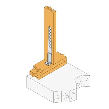 L‘ancrage pour montant d’ossature MAH485/2 et sa rondelle sont préconisés pour renforcer les murs à ossature bois soumis à des efforts de soulèvement.