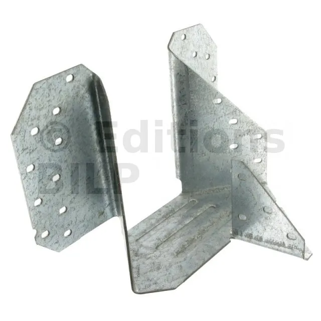 L’étrier pour croupe THJA26 est utilisé dans la fermette de section 38mm. Il permet la réalisation d’une croupe en assemblant les demi-fermes d’arêtier et d’empannon.