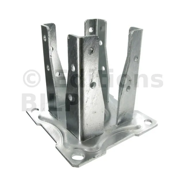 Le pied de poteau carré sur platine AG527P est préconisé dans la réalisation de petits ouvrages tels que les clôtures de jardin. Très facile à démonter, il est particulièrement adapté pour des structures temporaires. Le AG527P est à boulonner.