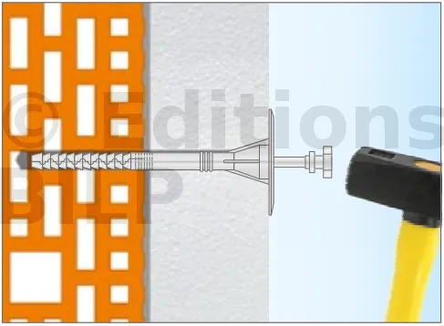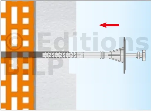 - Enfoncer le corps de la fixation de manière à ce que la rondelle de fixation soit orientée vers le matériau d’isolation thermique.