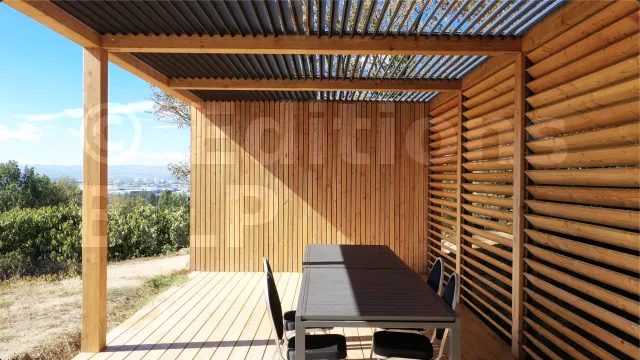 Quel plaisir de voir notre chalet mis en valeur et tellement plus fonctionnel avec une pergola bioclimatique. Nous allons enfin pouvoir profiter de notre terrasse tout l'été sans nous soucier sur soleil.