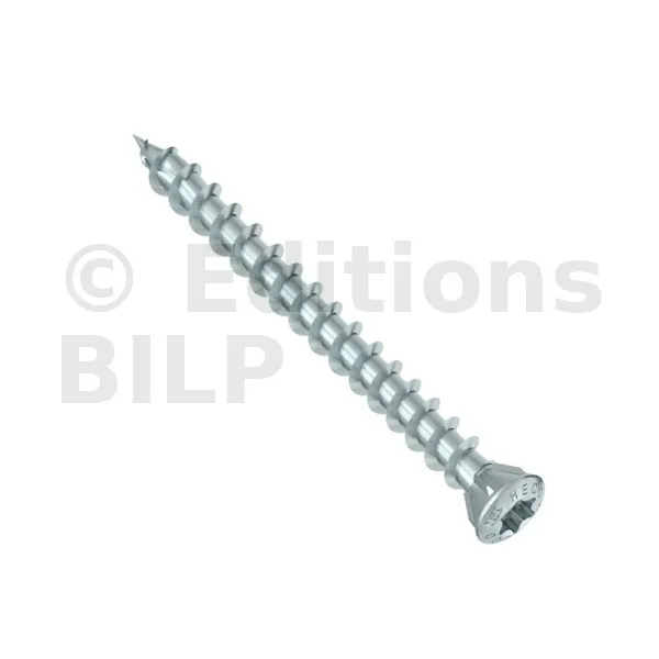 HECO-TOPIX-plus, vis pour planchers, tête fraisée bombée avec nervures de fraisage, T-Drive, filet total variable, zingué blanc, A3K - Réf. 60328