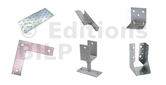 Certains assemblages requièrent l’usage de connecteurs métalliques galvanisés, par exemples pour relier les solives aux poutres porteuses, à la jonction entre les montants des murs et les lisses, etc. Même si ils ne sont pas indispensables dans certains cas, ils confèrent néanmoins un surplus de solidité et évitent les déchaussements.