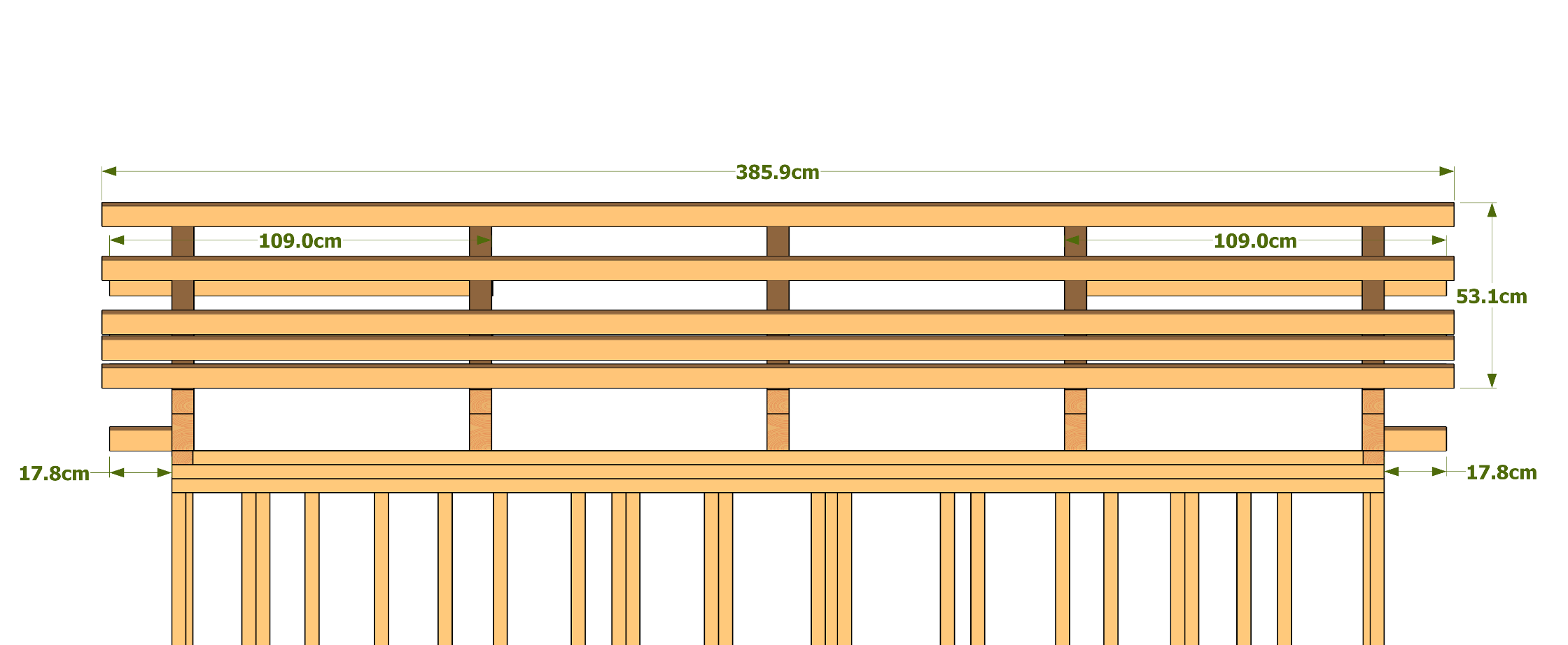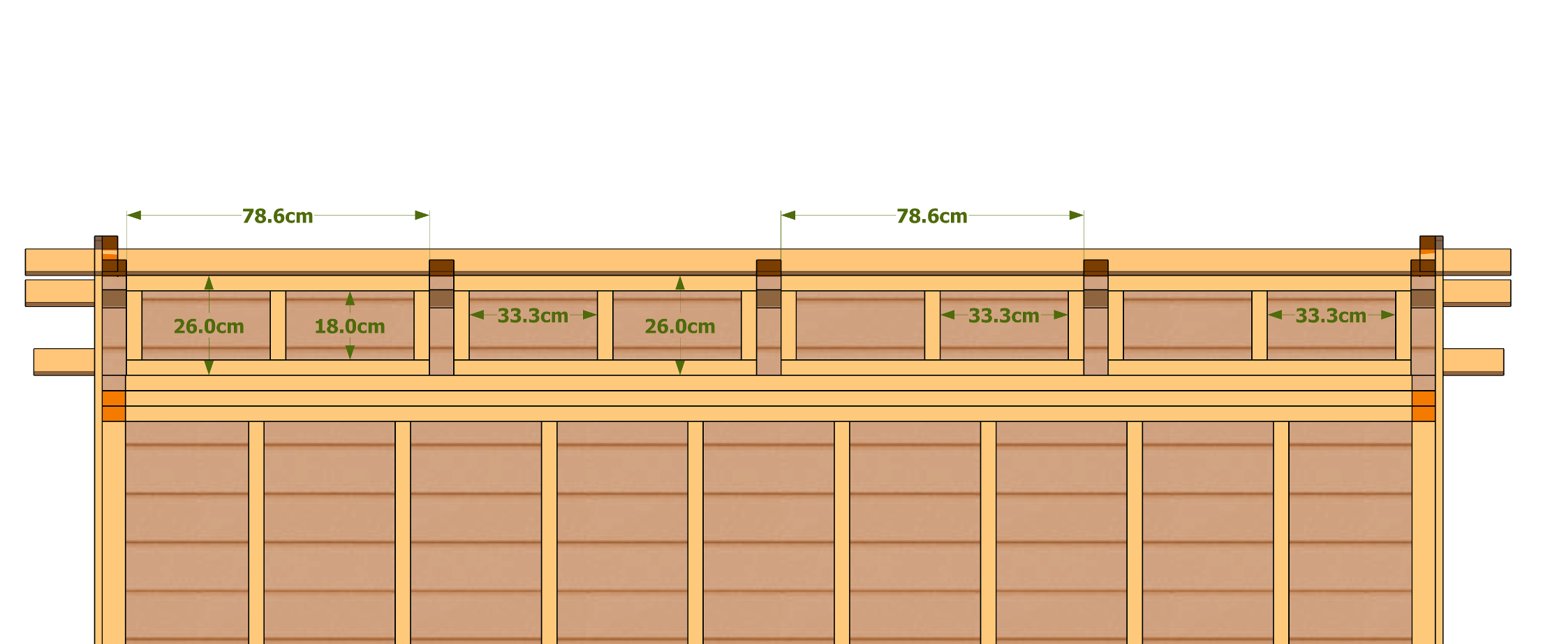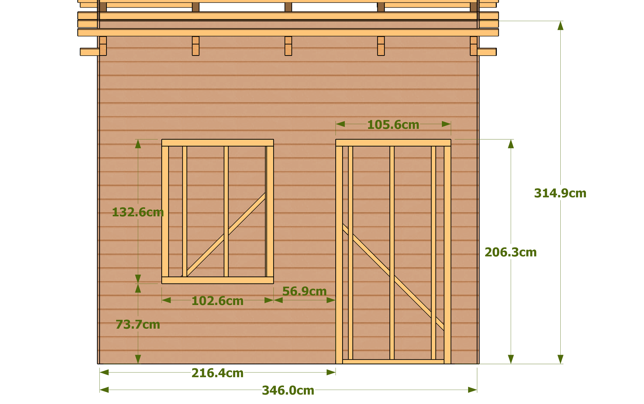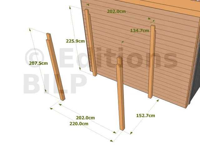 A partir des dimensions générales, cette page liste les éléments constituants votre cabane ainsi que leur dimension.