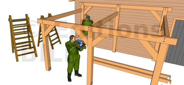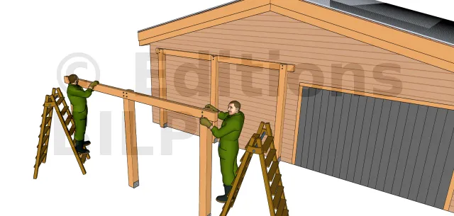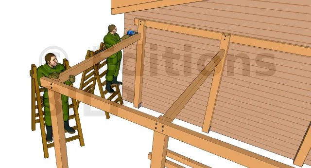 Attention aux encoches des poteaux et chevrons durant les découpes, aidez-vous des plans