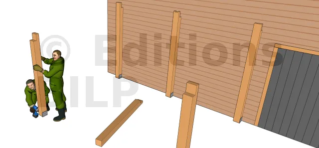 Avec de bons pied de poteaux, fixer les poteaux au sol dans des plots en béton ou dans une dalle en béton selon votre type de fondation. Assurer toujours la verticalité sur deux faces des poteaux à l’aide de niveau à bulle.