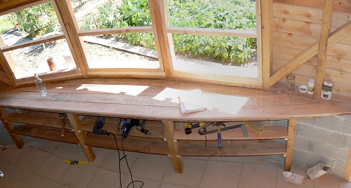 Un établi est indispensable pour tout jardinage un peu sérieux. Il sert à ranger les outils, les plots, les produits phytos, les graines, etc. et à travailler au sec avec un confort maximum.