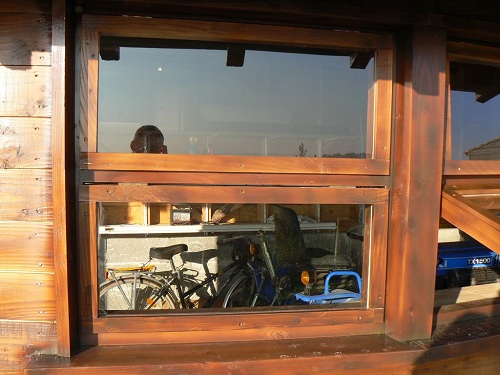 Pour construire les trois fenêtres, j’ai pris le même bois que l’ossature, c’est-à-dire du Douglas. Il me restait de nombreuses chutes de toutes manières.