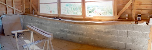 Quand j’ai réalisé les plans, je ne me suis pas embêté à essayer d’utiliser des dimensions standards pour les fenêtres. Je me retrouve donc avec une large ouverture segmentée en 3 parties. De toutes façons, je peux réaliser une grosse économie en réalisant les fenêtres moi-même. Et des fenêtres industrielles auraient altéré le charme de ma construction "faite maison".