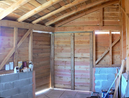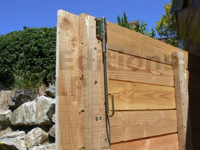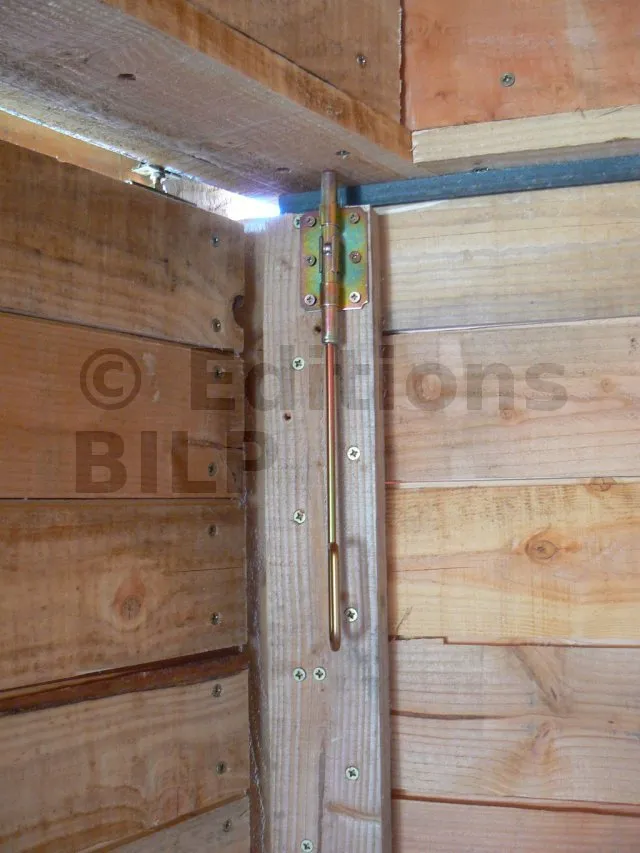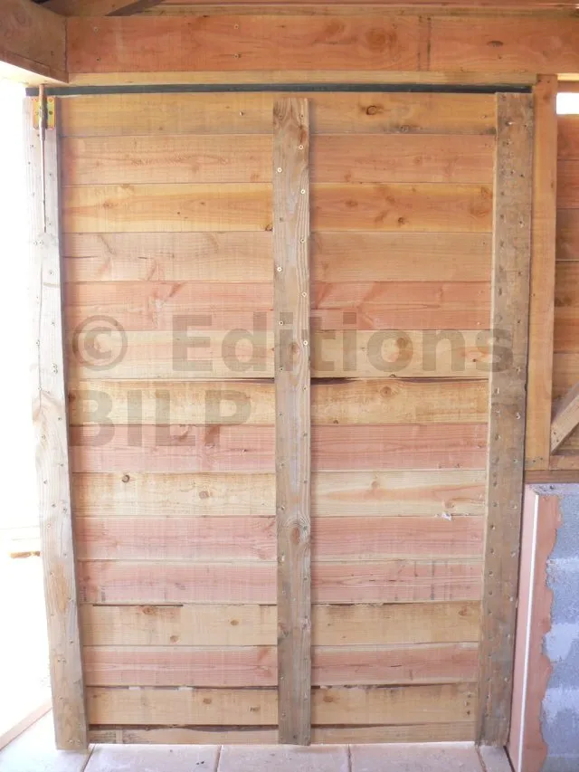 J’ai réalisé la porte avec des planches de bardage. Il s’agit en réalité de deux portes : une coulissante et une autre battante.