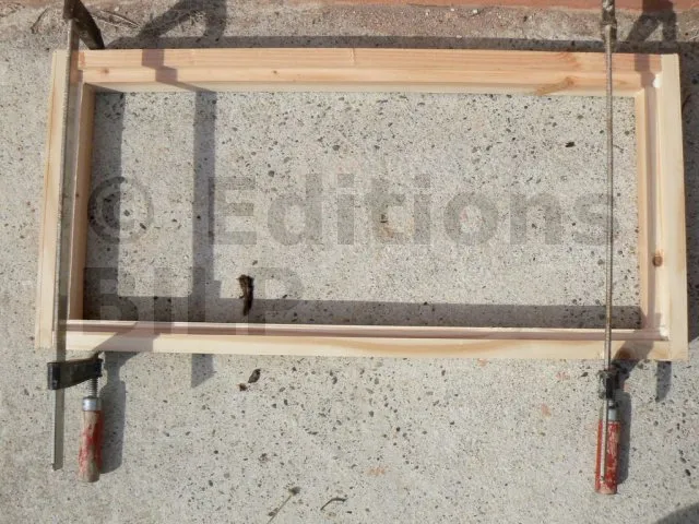 Pour chaque fenêtre, j’ai fait un dormant sous la forme d’un simple cadre avec des tasseaux. Un dormant recevra deux ouvrants.