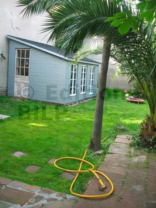 On a réalisé le plancher en fixant des lames de parquet sur des lambourdes traitées classe 4. Les lambourdes sont posées sur des pavés autobloquants, sans fixation. Le poids propre de la cabane sera suffisant pour assurer l’ancrage.
