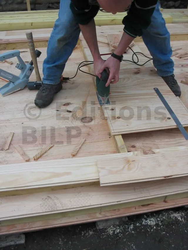 Sur les solives, on a fixé des lames de parquets.