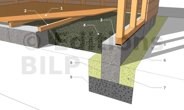 Assurant une base solide à la totalité de la structure, la fondation est l’une des structures les plus importantes. Son anatomie diffère en fonction de votre choix. Ainsi, pour les cabanes implantées à ras du sol, cela pourra être une fondation avec semelle filante ou sur dalle en béton, tandis qu’une cabane sur pilotis sera équipée de plusieurs plots.