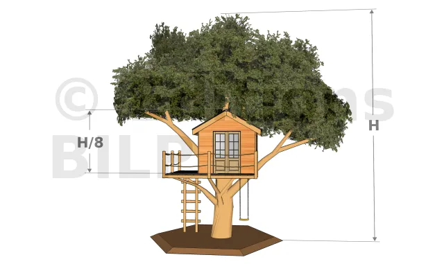 Les grands spécialistes de la construction des cabanes dans les arbres, de nationalité américaine cela va sans dire, nous affirme qu’il n’est jamais conseillé de construire une cabane au-delà du rapport d’un huitième (1/8). Par exemple, pour un arbre de 20 m, la hauteur de la cabane ne doit pas dépasser 2,5 m. Par ailleurs, le tronc porteur doit être le plus solide tout en ayant terminé sa phase de croissance. Il est donc hors de question de construire une cabane sur un jeune arbre.