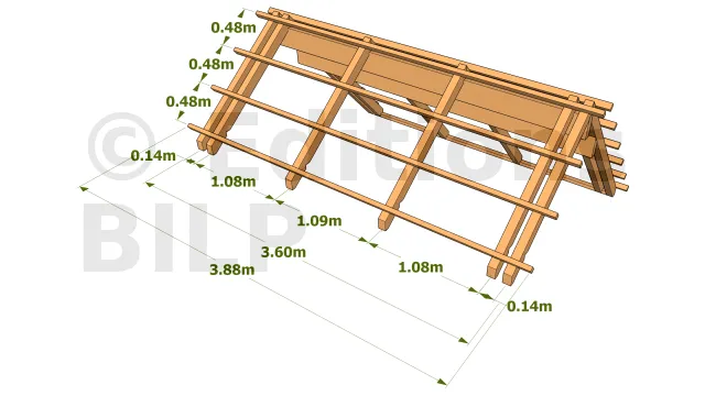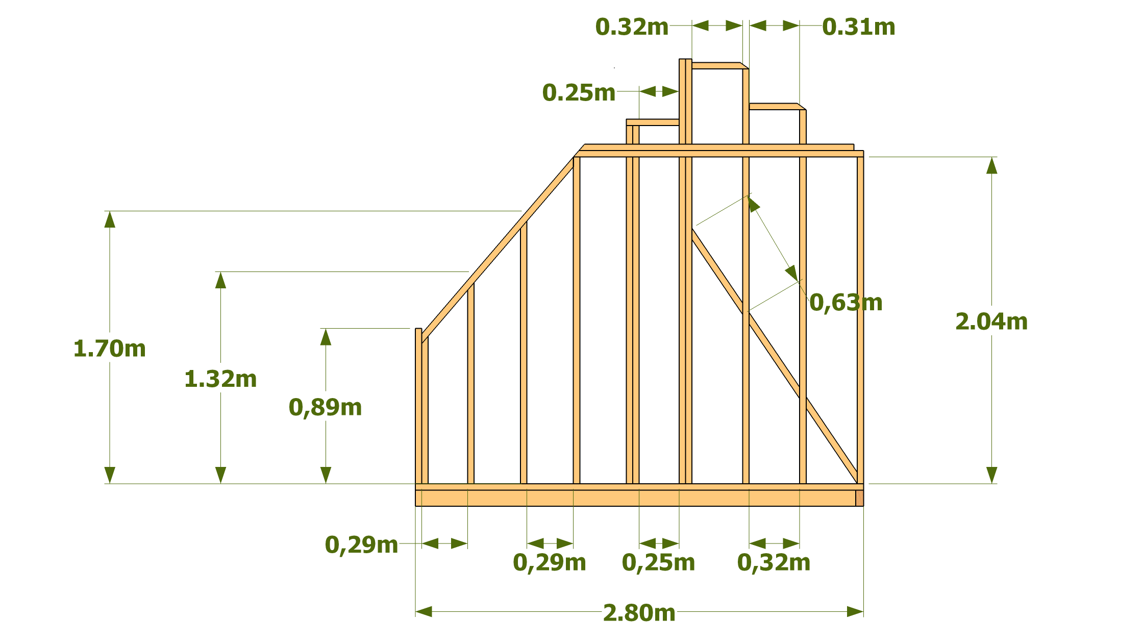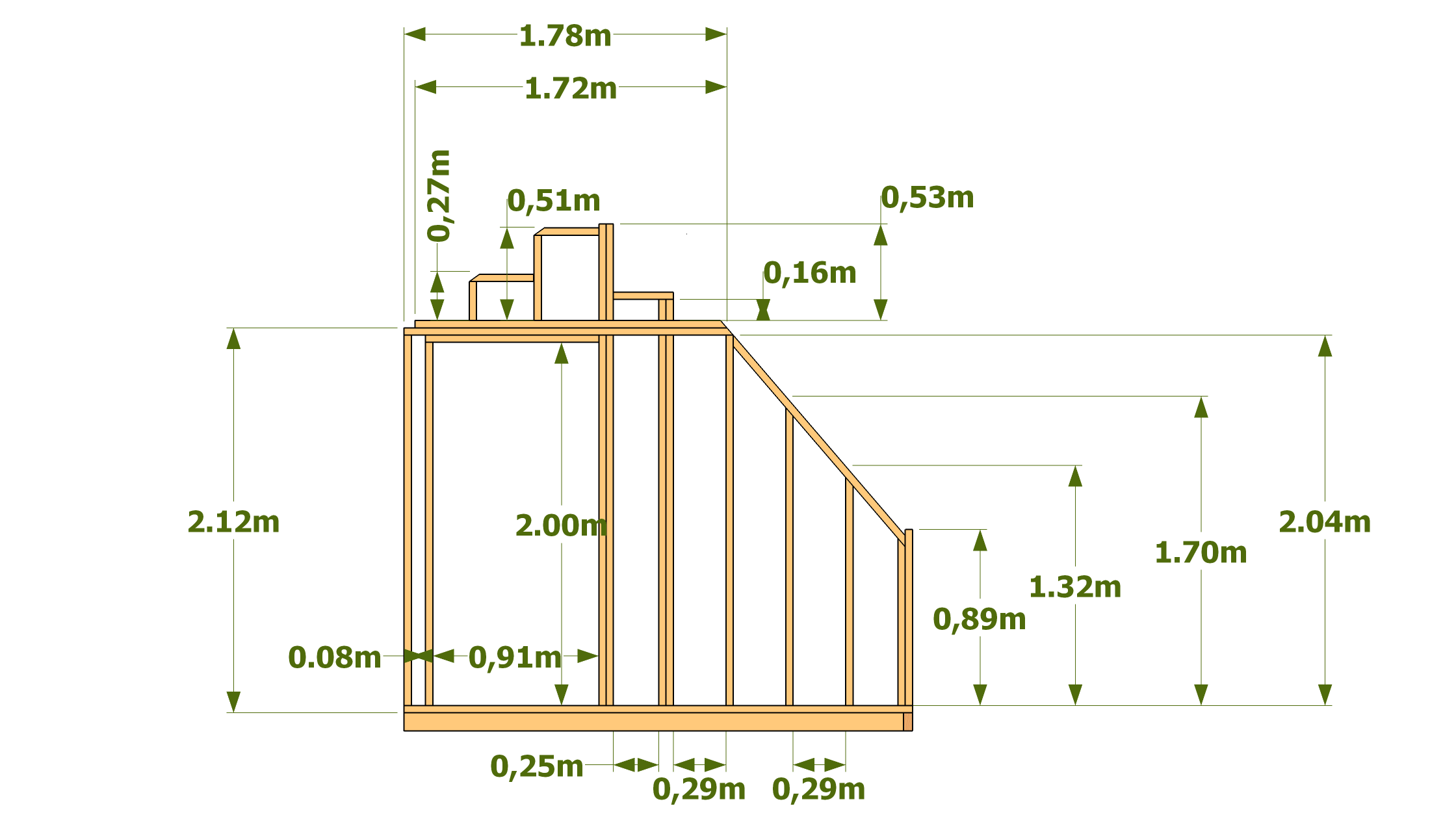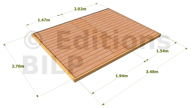 A partir des dimensions générales, cette page liste les éléments constituants votre cabane ainsi que leur dimension.