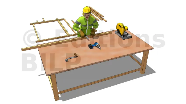 En premier lieu, découper les montants, les lisses basses et les lisses hautes suivant les longueurs en vous aidant des plans. Pour les montants latéraux, découper d’abord à la longueur la plus grande et on découpera après les angles. De même pour les contreventements.
