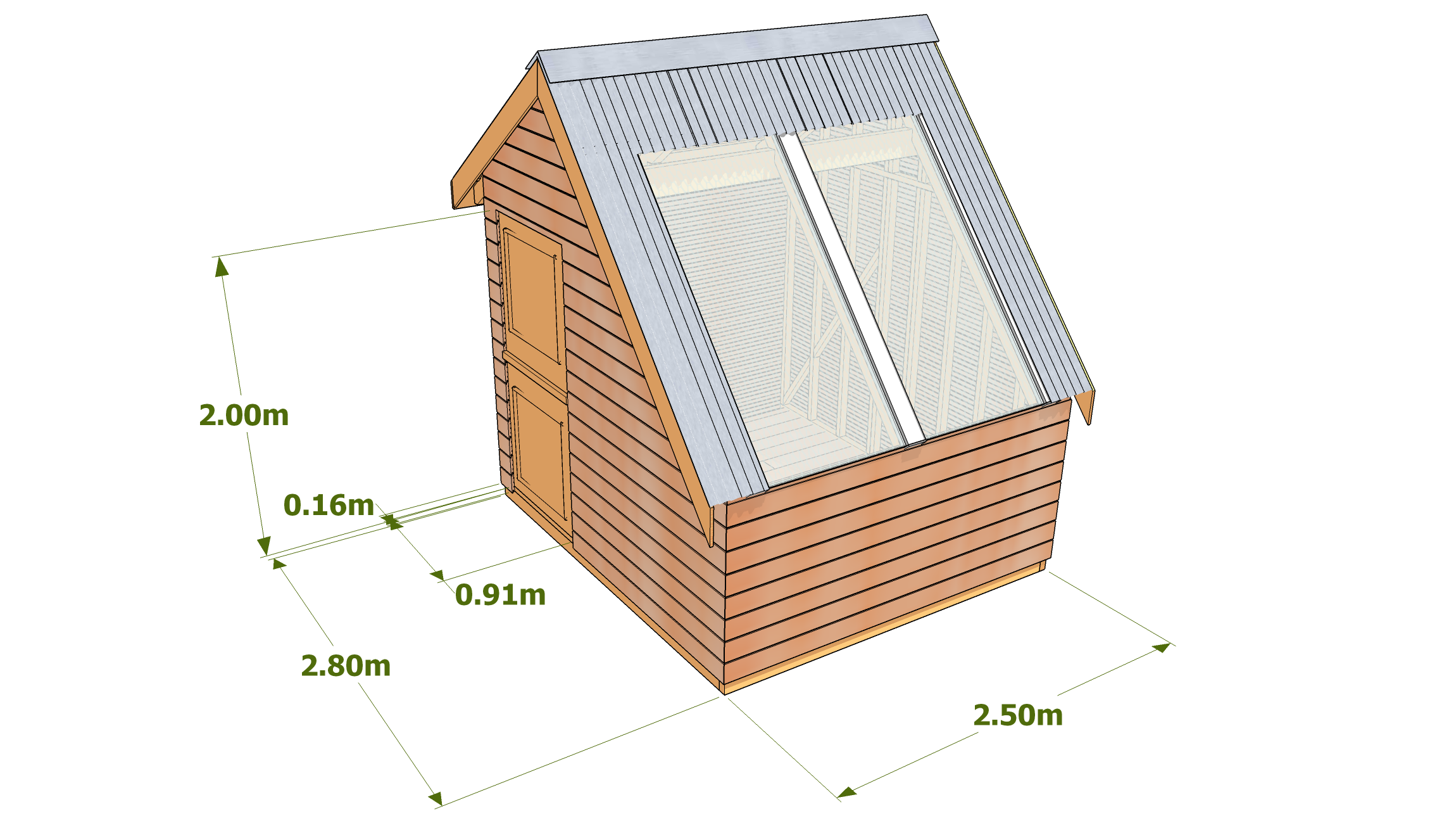 Voici les dimensions générales de cette construction. Pour d’autres dimensions, consultez-nous.