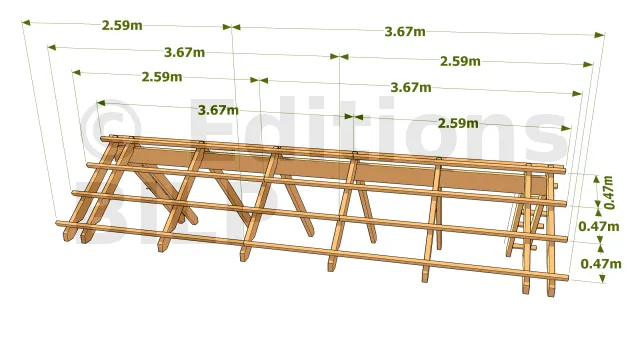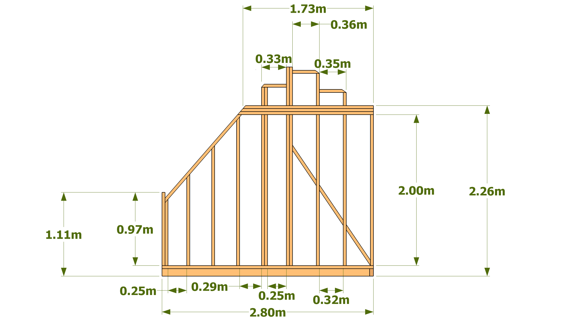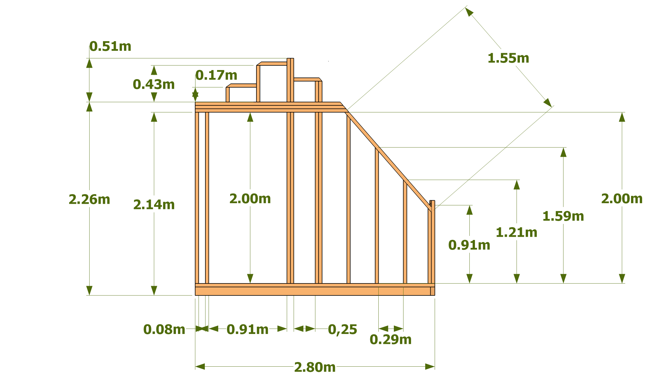 A partir des dimensions générales, cette page liste les éléments constituants votre cabane ainsi que leur dimension.