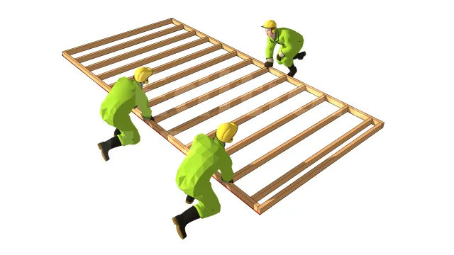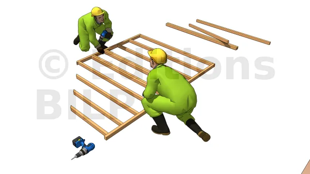 Après cela, vous pouvez commencer par installer les éléments du plancher, si c’est votre choix bien évidemment.