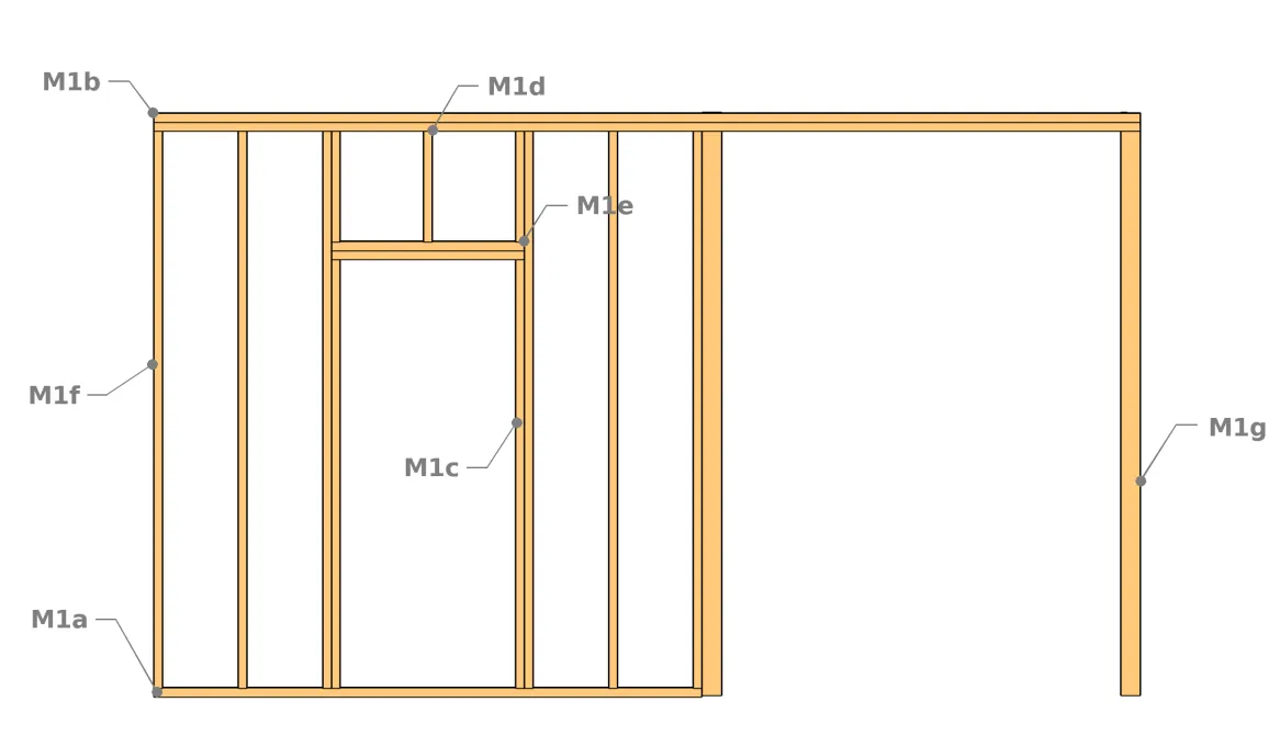 | M1c | Poteau de reprise de la porte | 6x4 cm | 200 cm | 2 |