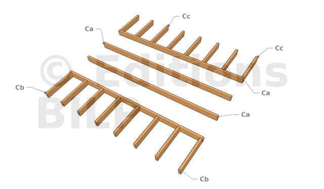 Les tableaux ci-dessous indiquent des longueurs de pièces. Ne découpez pas à longueur en début de chantier mais suivez le guide dans les pages suivantes. Prévoyez donc un peu plus long au moment de l’achat.