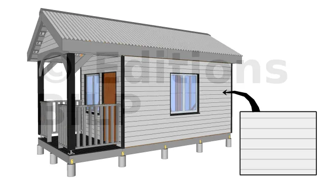 C’est une cabane standard dotée d’une toiture à double versant. Vous pouvez l’utiliser comme petit bureau ou comme chambre. Le modèle est bâti sur une plateforme en bois, ce qui va faciliter sa construction et rendre le coût d’investissement raisonnable.