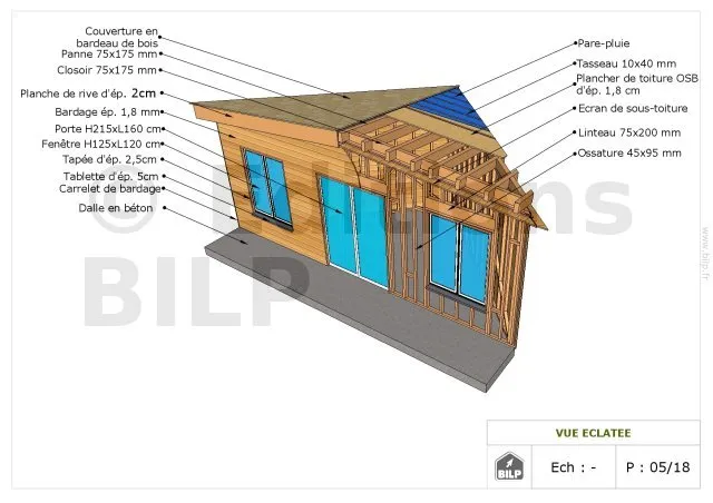 Guide de construction des cabanes et abris de jardin, incluant également le guide des ossatures-bois, le guide des plateformes bois, et le guide des charpentes, sur support PAPIER. | |||